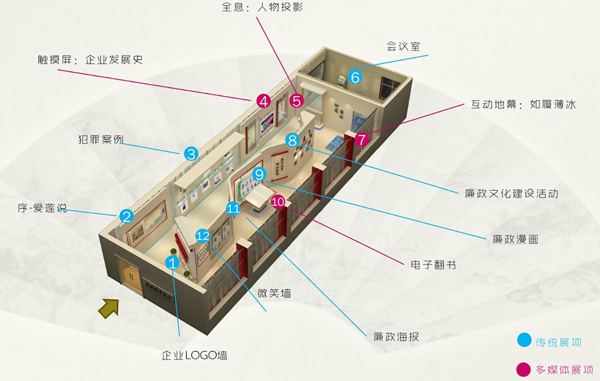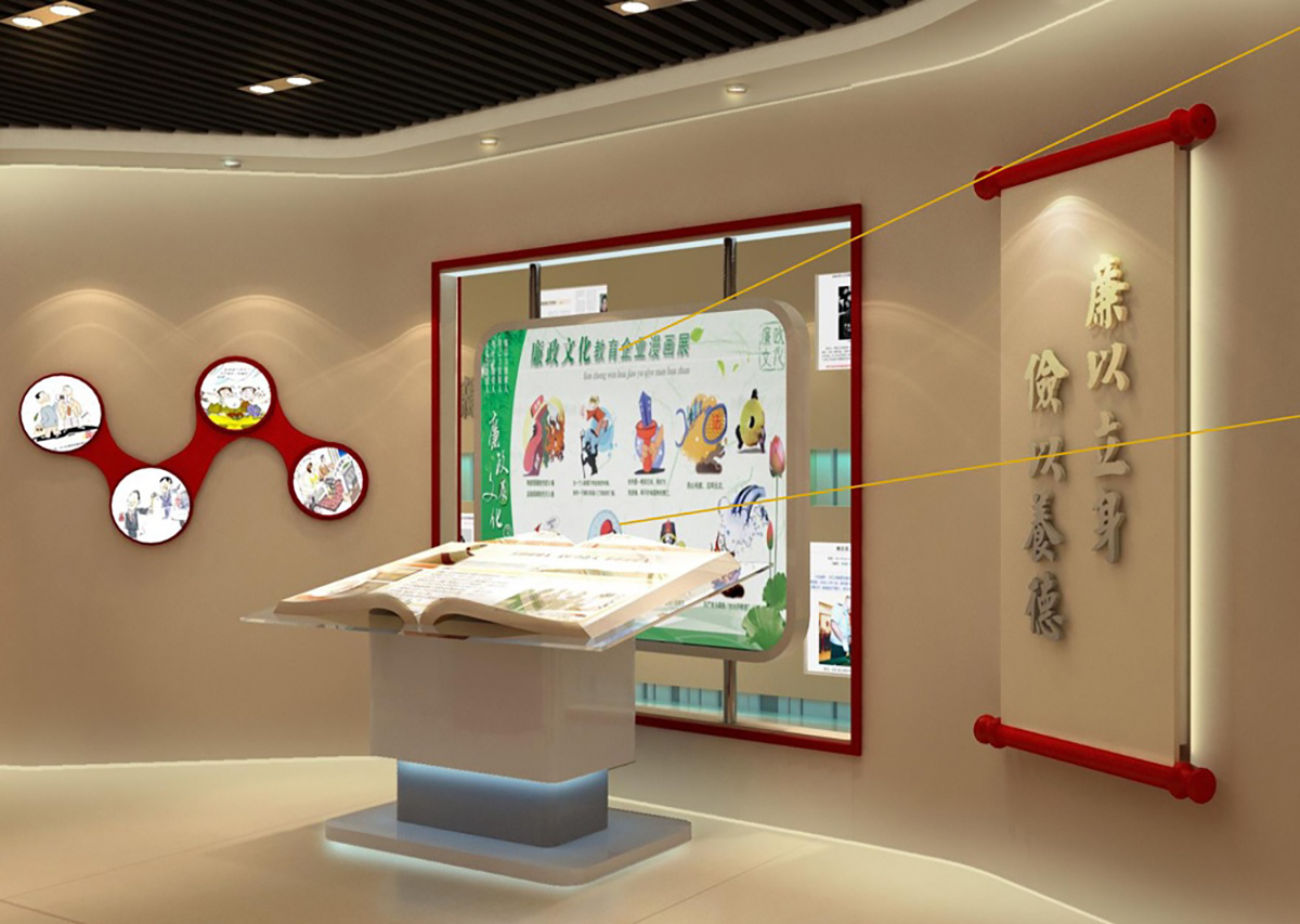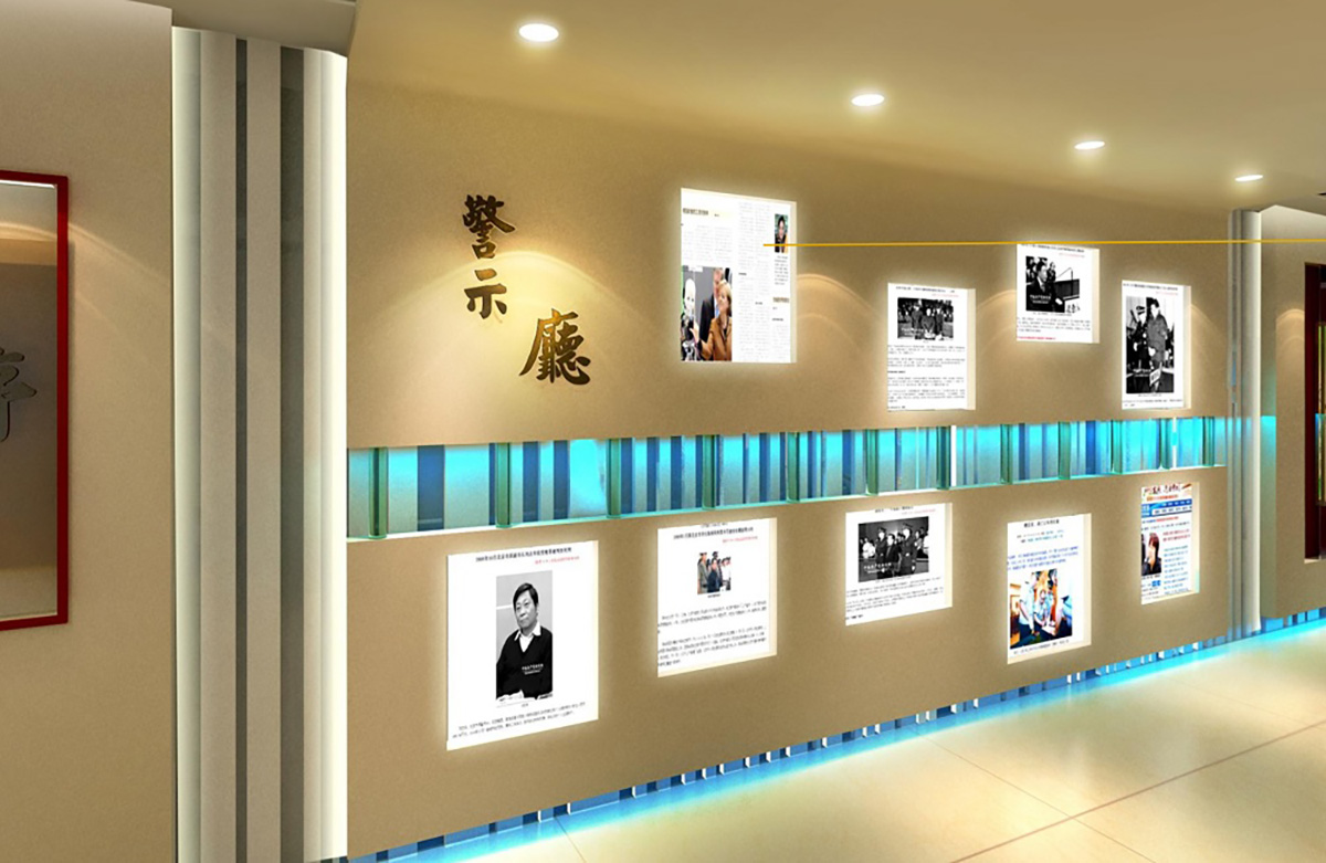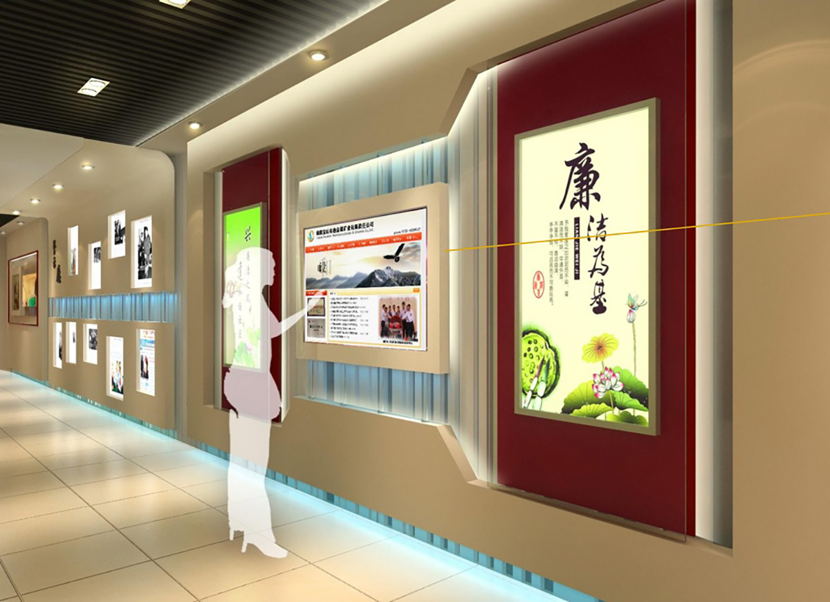 深圳市火影数字科技承接湖南宝山矿业廉政教育展厅的整体设计及施工,突显主题,配合空间色调,获得了业主方盛赞。
