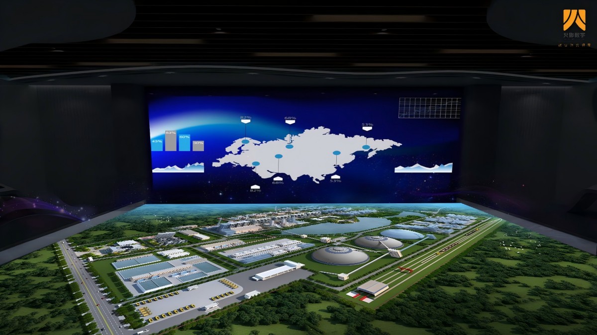 采用全LED屏数字沙盘,需要体现全厂规划3D沙盘和供气管路区域3D沙盘,需实现企业介绍、红外线点触互动、IPAD手持设备点触、互动环节展示突出各个生产装置的3D模型及各个生产工艺流程详解、地下管网结构展示、实现生产实时摄像头对接和全厂DCS数据对接在互动模式下可视化展示。