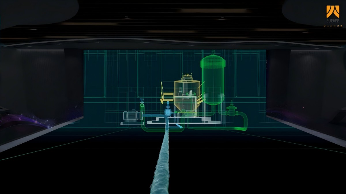 一、参观者可手持激光笔任意点击沙盘中某厂房或设备,墙面立即弹出相应触发点位设备工作原理,工艺流程三维动画、并通过远程实时调用生产调度中心运行参数、PM值和实时监控画面。三维动画演示生产设备工作原理、工艺流程、生产成果。三维动画需真实还原设备的材质、运行原理、气液体的逼真动态效果。把复杂深奥的运行原理和生产工艺技术深入浅出地呈现在参观者面前。参观者可以根据自己的喜好通过激光笔选择要查看的功能区域或工艺流程节点进行放大缩小展示。