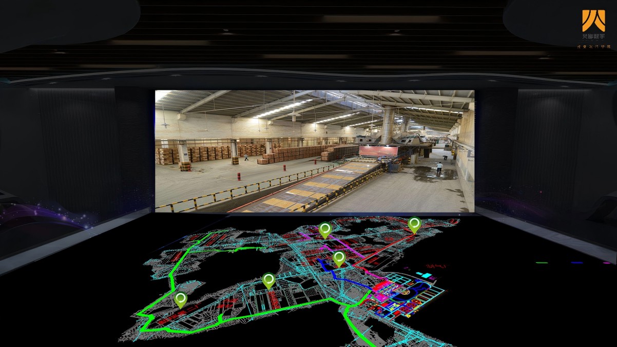 二、通过三维GIS地理信息系统准确定位并1:1还原基地各功能分区、工业燃气的输送管网及终端服务企业,并立体呈现在沙盘之中,当激光触控点击任意输送管网 ,墙面实时展示触发点位输送管网的详细参数和运行数据及将输送的企业,当激光触控点击管网中任意企业 ,墙面实时展示对应企业的简介 、企业宣传片 、供气用量、企业的生产车间的实时监控画面。共需展示42家企业。参观者可以根据自己的喜好选择要细看的区域和触发点位进行放大缩小展示。