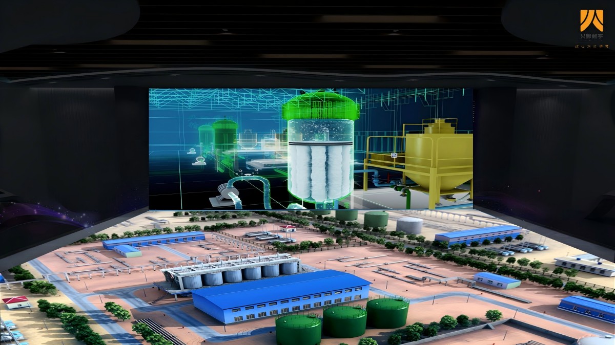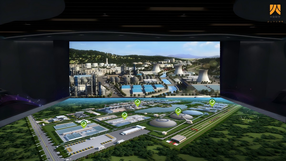 采用全LED屏数字沙盘,需要体现全厂规划3D沙盘和供气管路区域3D沙盘,需实现企业介绍、红外线点触互动、IPAD手持设备点触、互动环节展示突出各个生产装置的3D模型及各个生产工艺流程详解、地下管网结构展示、实现生产实时摄像头对接和全厂DCS数据对接在互动模式下可视化展示。